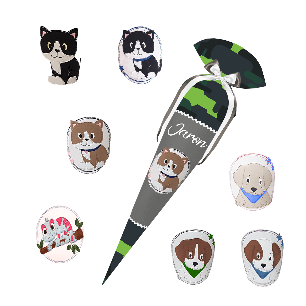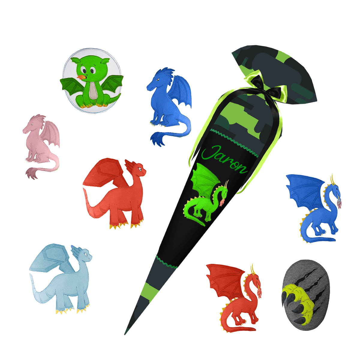 Du kannst deine Wunsch-Schultüte ganz einfach nach deinen Vorstellungen gestalten. Wähle aus verschiedenen Stofffarben, Motiven und Schriftarten und erstelle so eine einzigartige Zuckertüte für dein Kind.