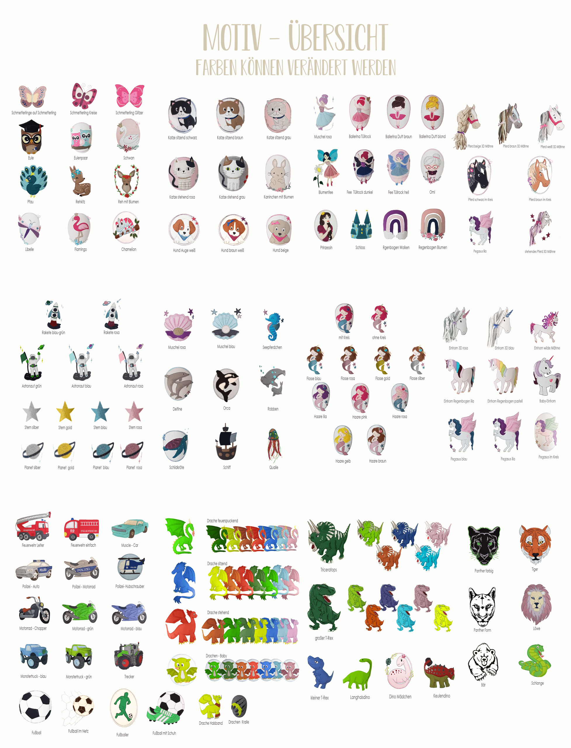 Alle Zuckertüten können farblich verändert werden. Schicke uns einfach eine Anfrage über das Kontaktformular, wenn nichts passendes dabei sein sollte. Zum Beispiel: Suchst du nach einer bestimmten Applikation für die Schultüte, schreib uns an, wir  zeichnen auch individuelle Wunschmotive.